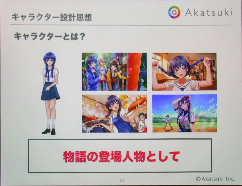 一般に混同されることが多い「キャラ」と「キャラクター」。アカツキでは両者を「デザインから受ける印象」と「物語の登場人物」に分けて使用している。『ハチナイ』はストーリードリブンのソーシャルゲームであるため、「キャラクター」としてのデザインを意識することが重要だった