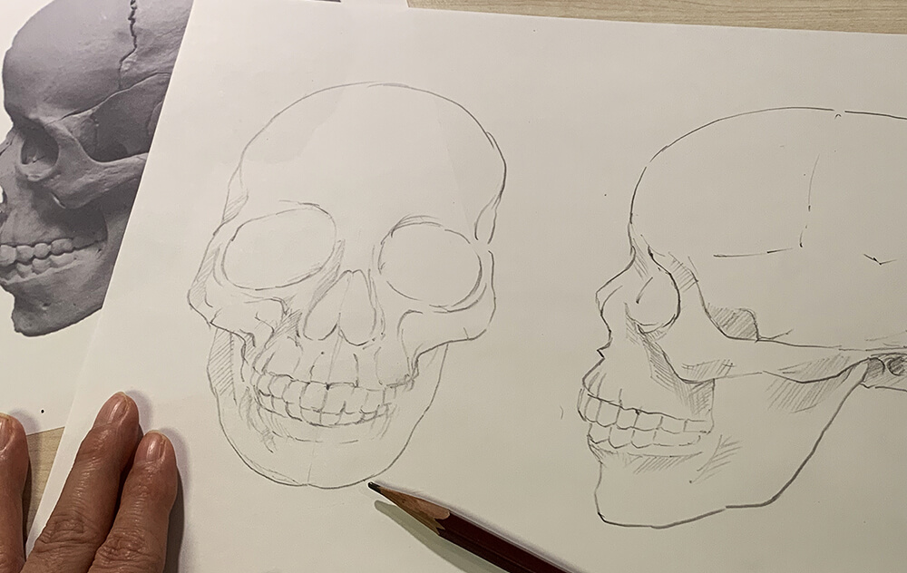 頭蓋骨をクロッキーしてみよう