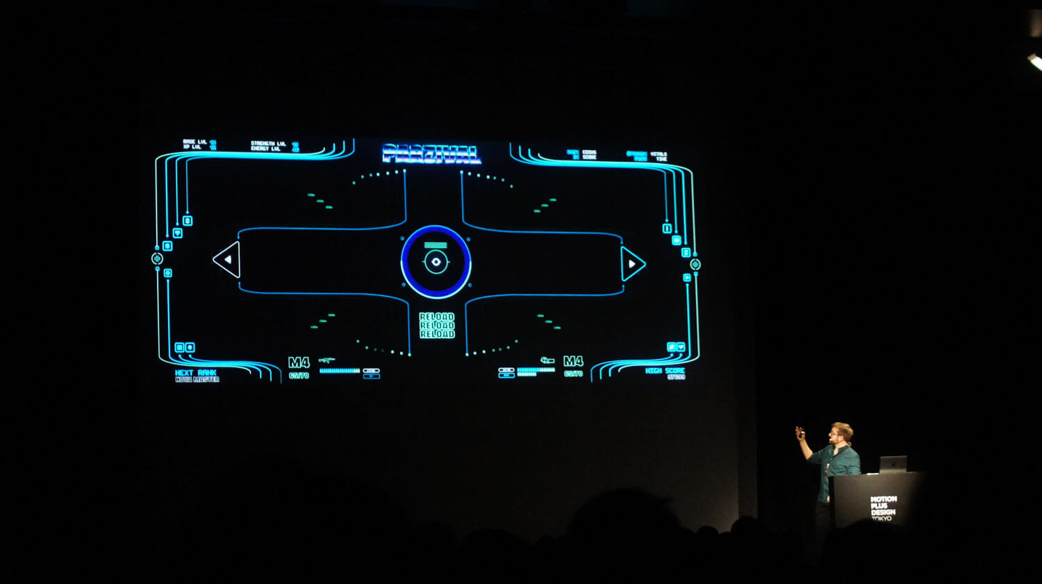 続いて紹介されたのは『レディ・プレイヤー1』のヘッドアップディスプレイの制作過程だ。ここでも膨大な量のリサーチが行われた。劇中のVR空間「オアシス」は80年代カルチャーを凝縮した世界なので、当時のゲームソフトやメディアに使われていたデザインを徹底的に調べた。ディスプレイに表示されるアバター名にも80年代のゲームロゴやバンドロゴらしさを加えて雰囲気のあるグラフィックスをつくり上げていった。