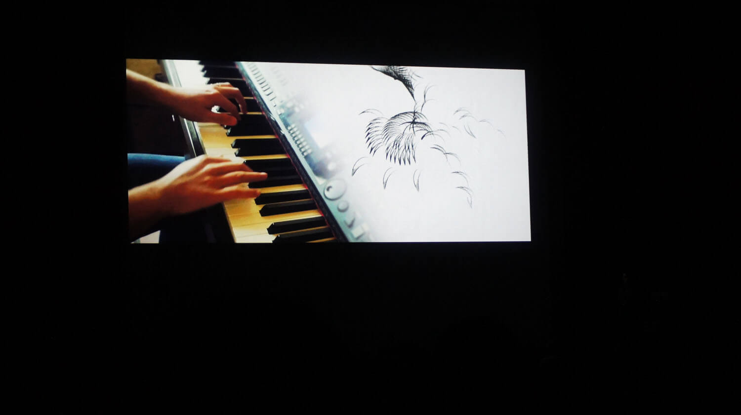 続いて、非常に興味深い作品が紹介された。ピアノの音の情報をHoudiniに入力し、リアルタイムでカリグラフィのような線を描画していくというもので、『PIANOGRAPHY』と名付けられている。プレイヤー氏は即興でピアノを弾きながらモニタでリアルタイム生成されるカリグラフィ映像を見て、その描画内容をコントロールするために演奏内容を変えていくという。つまりピアノとHoudiniとのセッションだ。演奏風景とHoudiniによる描画を合わせて見ることができる映像がVimeoにアップされているのでぜひご覧いただきたい。