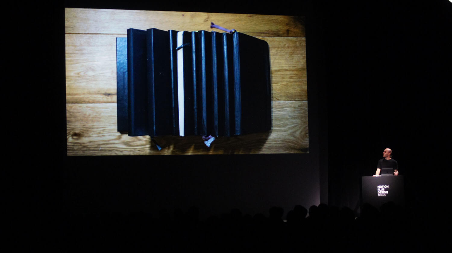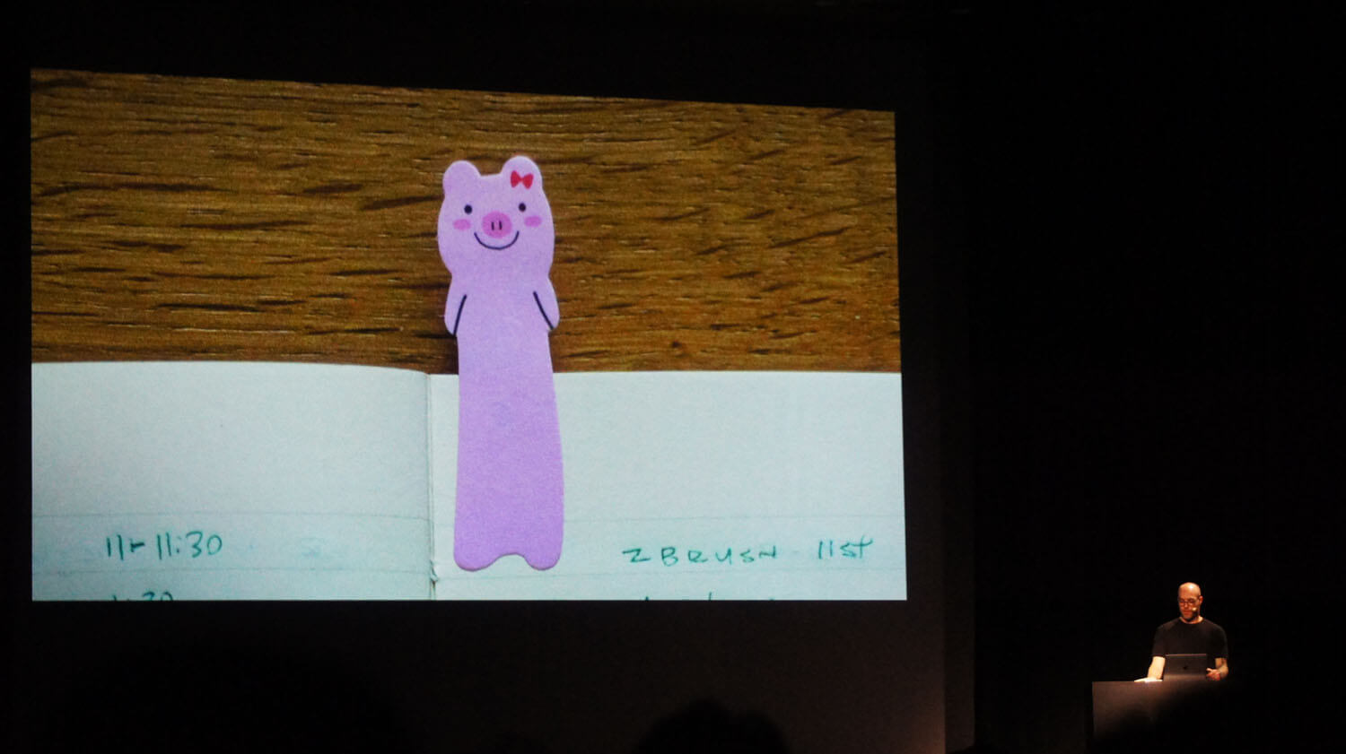 これだけ聞くとデジタルでもできることだと思うだろう。しかし彼の仕事スタイルでは手帳を使うアナログ・ルーチンの方が効率的なのだ。「これを見てください」と映し出されたのが、手帳に貼り付けられた可愛いしおりだ。このしおりひとつで、手帳が彼をしばりつけているものではなく精神的にもクリエイティブを上手くコントロールしているアイテムなのだということが理解できる。