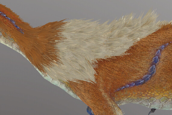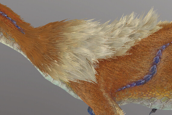 ▲これらをモーションブラーでぼかすことで、毛の流れが再現された生き物らしい毛並みを表現。アイルーやガルクだけでなく、前項で説明したオサイズチのファー表現にも同様の手法を用いている