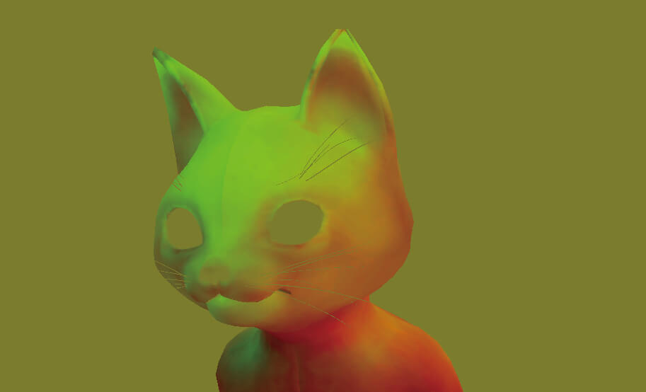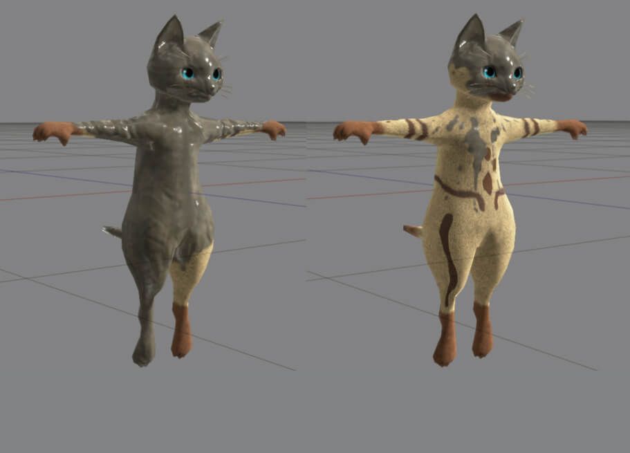 ▲【左】セカンダリUVを使用したテクスチャの適用前/【右】適用後。色の変わり目が綺麗なグラデーションになっている