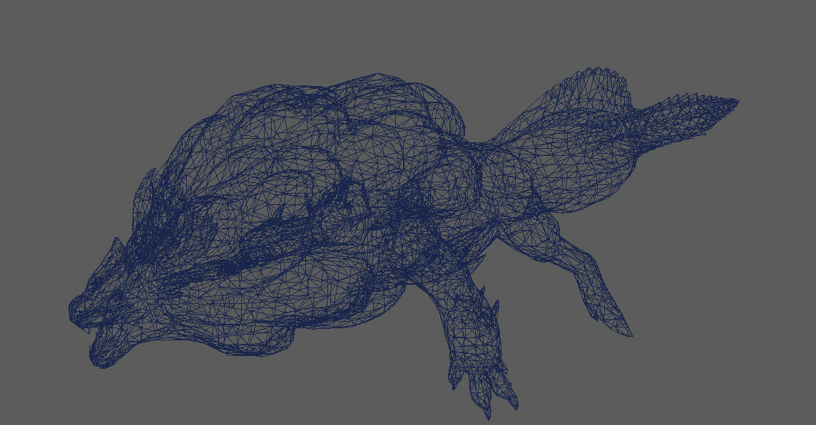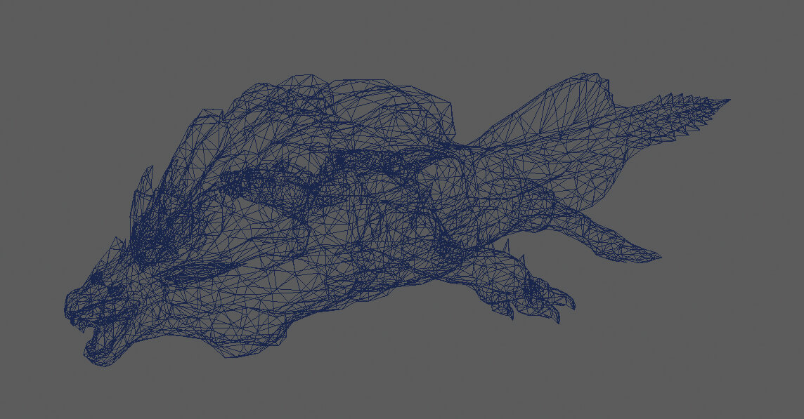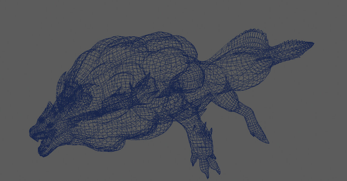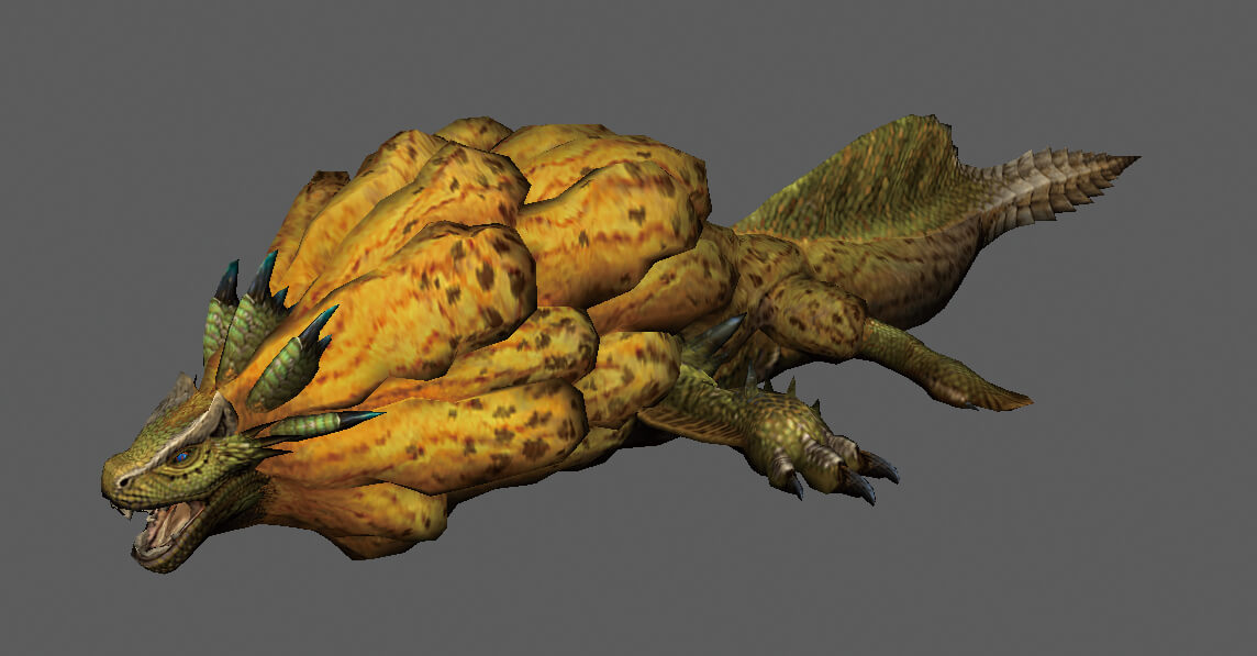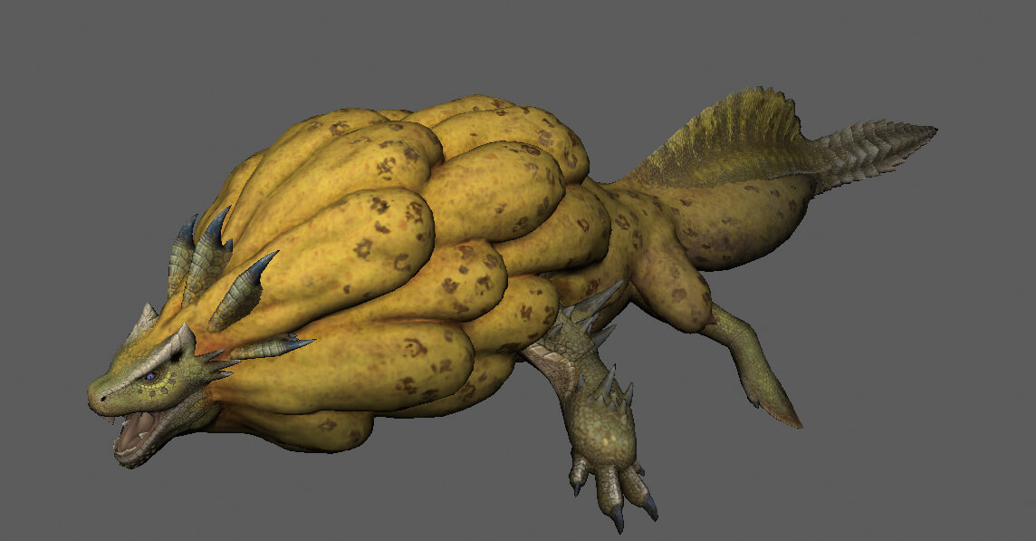 ▲ロアルドロスのハイメッシュモデル。背びれの形状や前足の突起部分など、細かなディテールにちがいがある