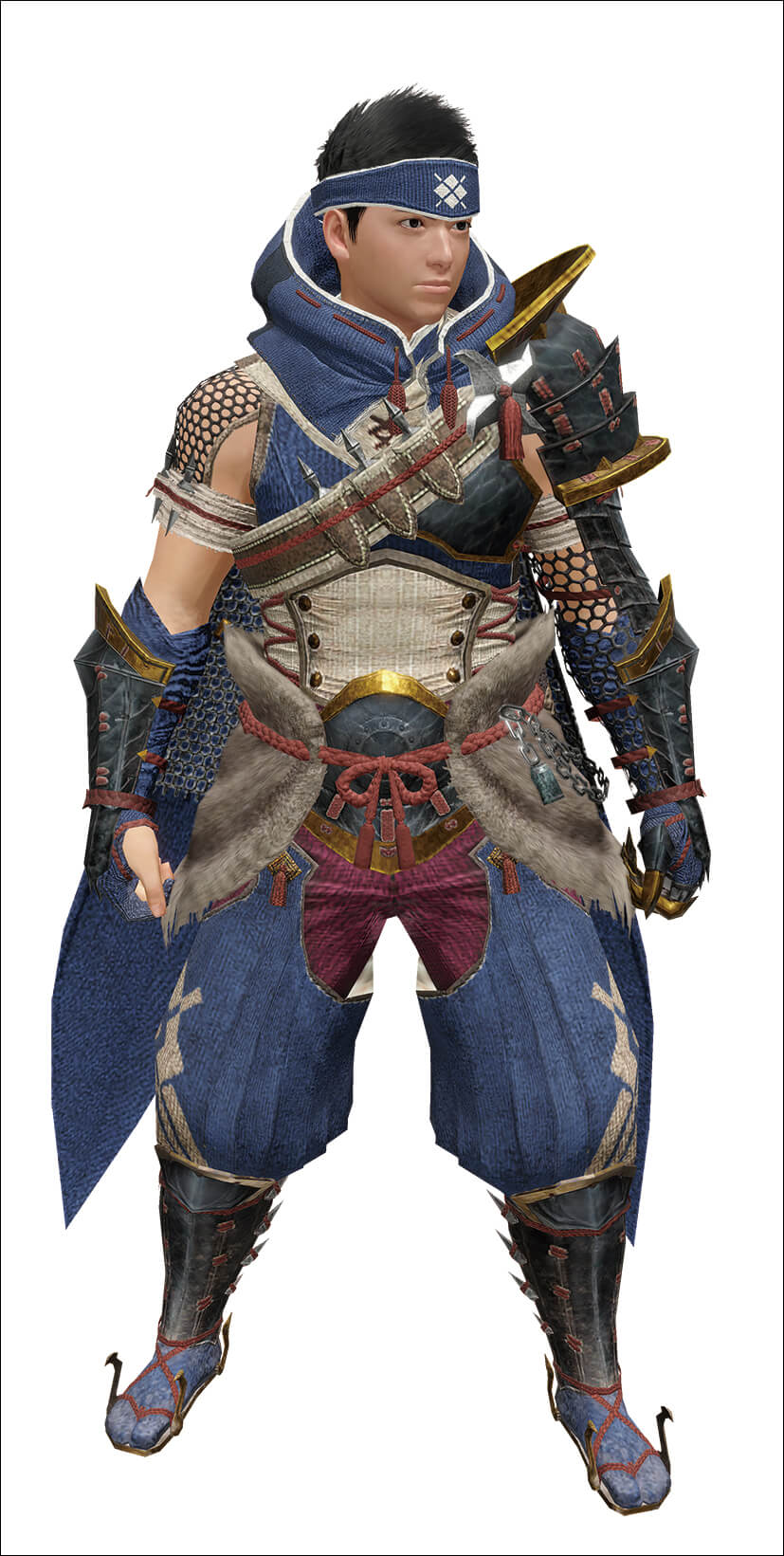 新規キャラクターのモデリング工程は、Mayaでモデリングおよびスキニング、Substance Painterでテクスチャ作成、RE ENGINE上で調整というながれで進行。過去作に登場したデザインは仕様変更・各種リダクション(必要に応じてUV、テクスチャ、スキニング修正)、その後は同様にRE ENGINEへ出力し調整する。基本仕様はプレイヤーが17,000ポリゴン、オトモが5,000ポリゴン、モンスターはサイズに応じて3,000~12,000ポリゴン。
