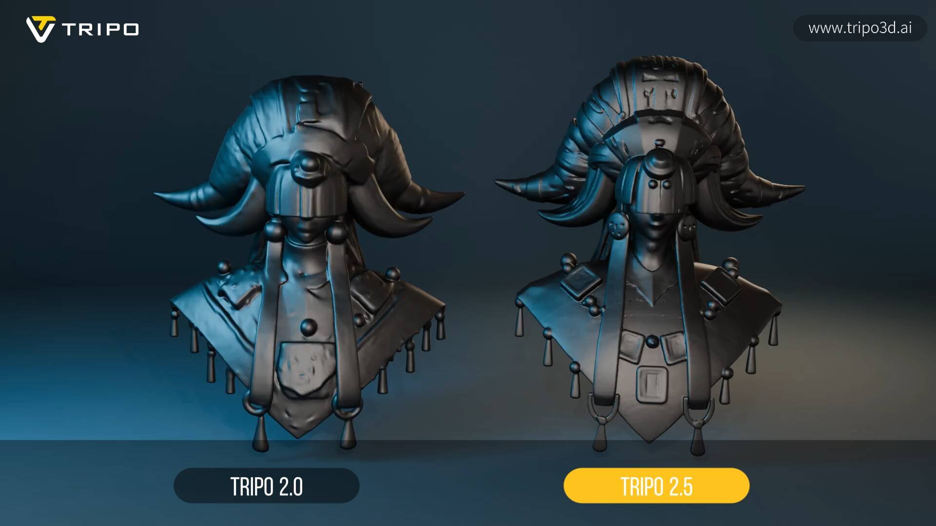 Tripo v2.0 vs. Tripo v2.5 in both text-to-3d and image-to-3d generations - clear geometry, more details, and a big yay. pic.twitter.com/BEBsgZlQ7n