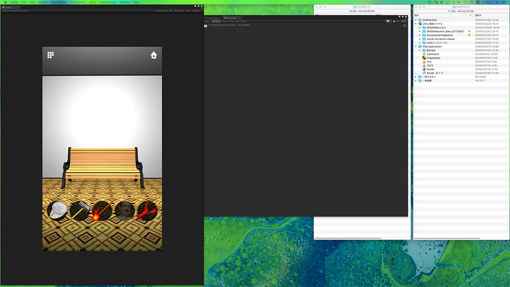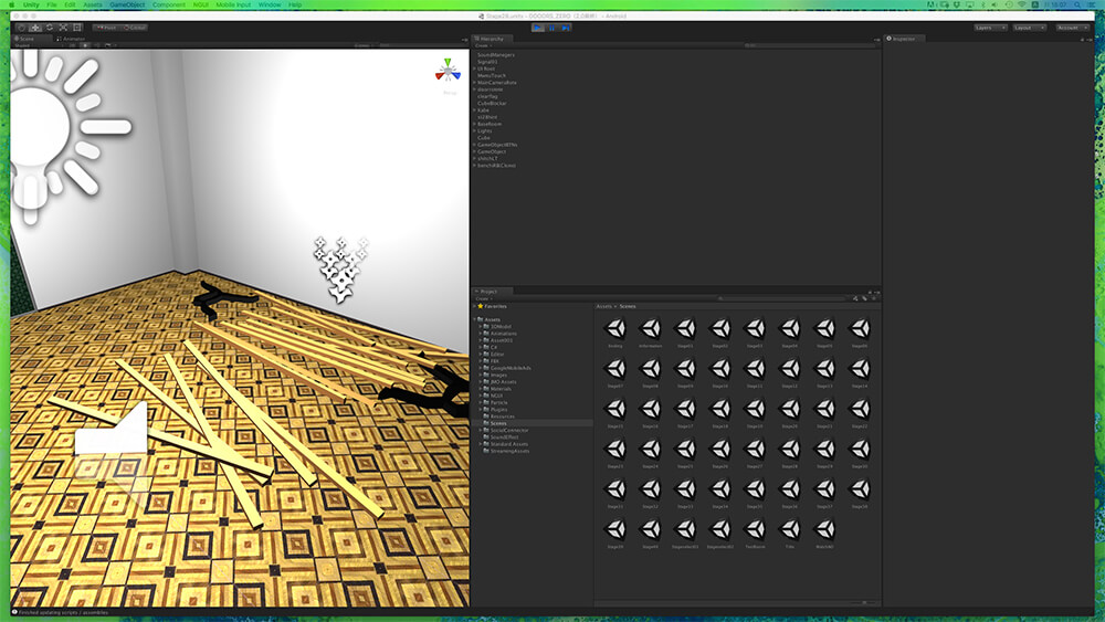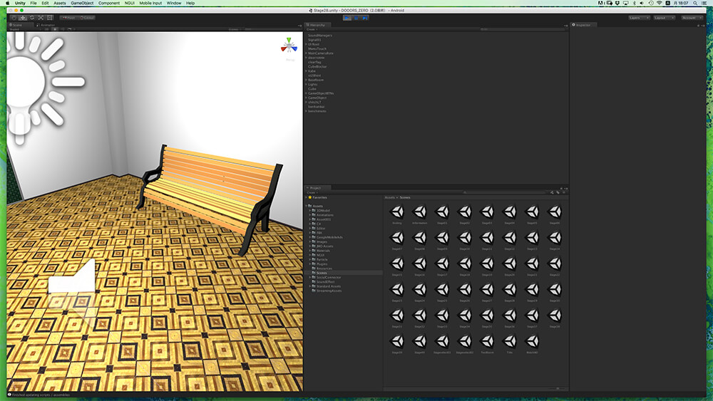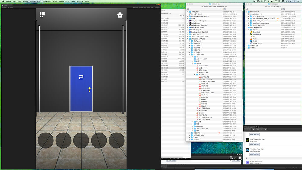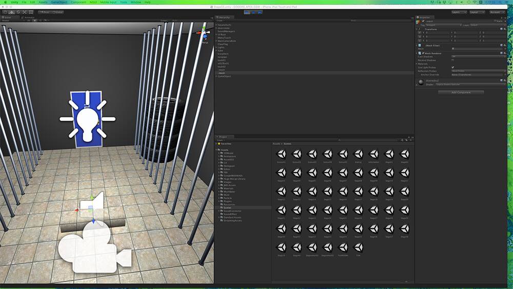 ただ、そこからのコードを書いて実装をしていく作業が、デザイナー出身の野々山氏にとって厳しいポイントになっていたのは事実だ。Unity導入以前のアプリ開発においてはCOCOS 2D for iPhoneを用いていたそうだが、どんな謎や仕掛けを思いついても、それを実装できるかどうかの判断も難しかった。部屋のレイアウトは画像を座標で指定し、物理法則などは数式などを用いて実装しなければならず、またそれらの挙動の確認も、書き出してみなければできない。試行錯誤に非常に時間がかかっていたという。