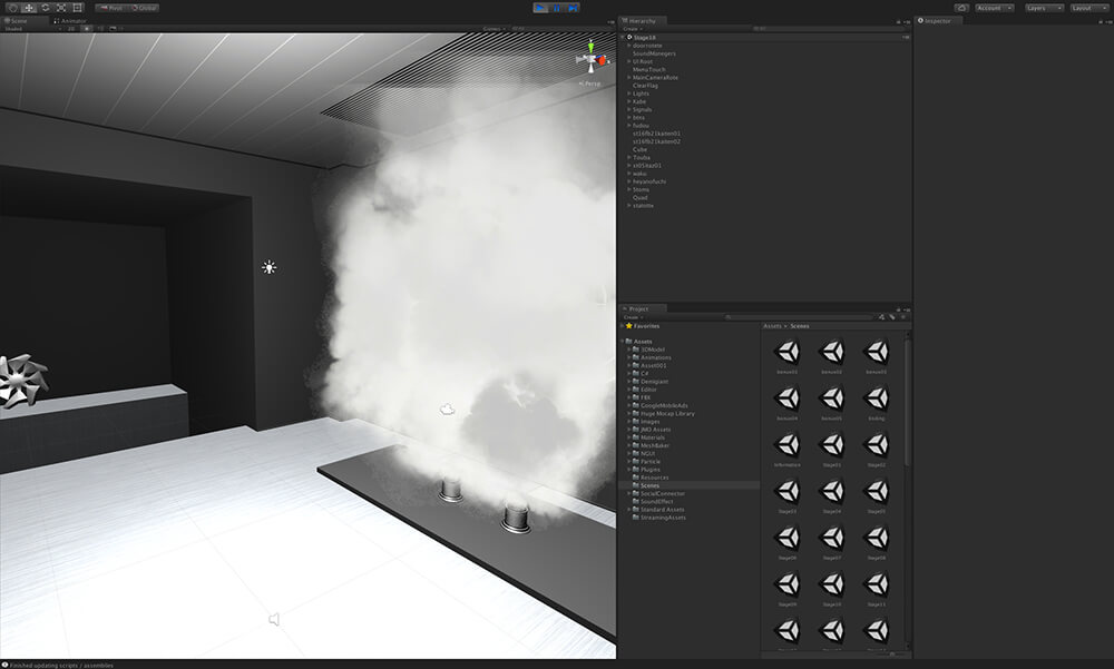 「標準機能やアセット導入、そしてパラメータ設定だけで、火や水、煙といったパーティクルや流体的な動きの表現、そして物理演算ができる。本当に手軽になった。また、そうできちゃうのはうれしいと感じる同時に、ますます参入ハードルが下がって、競争相手がどんどんできちゃうなあ、とも思いますが(苦笑)」