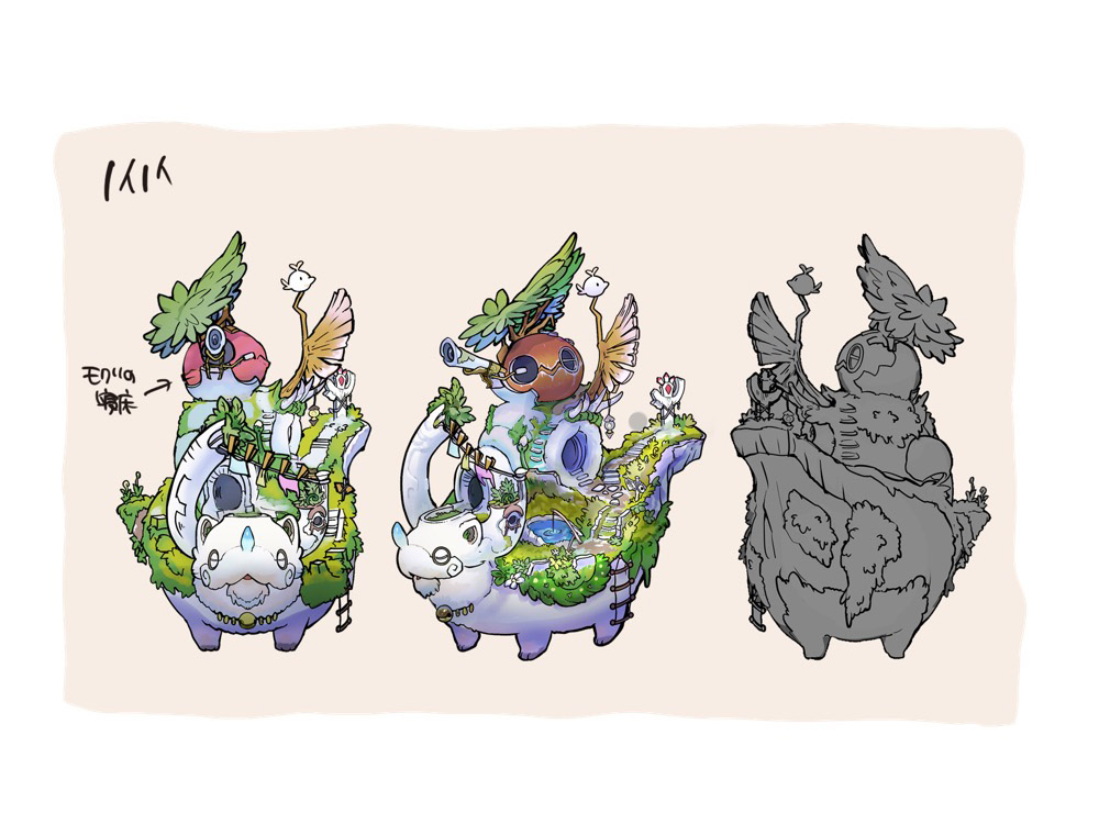 つくしあきひと氏によるモクリ、ノイノイのデザイン画
